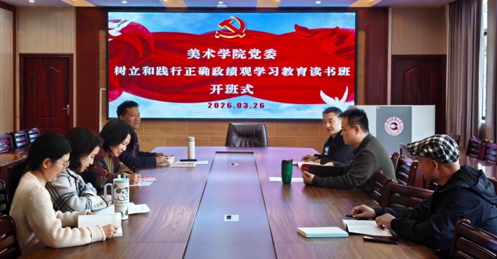 3月26日至27日,美术学院党委举办树立和践行正确政绩观学习教育读书班。本次读书班包含了启动式、专题辅导、交流学习、理论学习中心组集体学习研讨、个人自学等环节。主要围绕深入学习贯彻习近平总书记关于树立和践行正确政绩观的重要论述并开展交流研讨。在开班式上,学院党委书记范昭平同志作开班讲话,党委副书记高璇同志作学习教育纪律要求。范昭平同志还作了《如何树立和践行正确政绩观》专题辅导。学院党政班子成员围绕“...