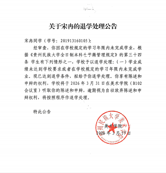 关于宋冉的退学处理公告