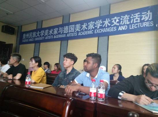 5月24日,周四上午10:30,美术学院产品设计(民族民间美术技能)专业潘陶洁副教授与德国美术家,应邀在美术学院A区二楼会议室为我院在校师生开展学术分享交流会。潘淘洁教授首先向大家介绍了贵州的17个少数民族,以及民族分布地。其次讲述贵州的传统工艺:刺绣、蜡染、漆器、纺织、面具、剪纸、银饰、造纸等,给大家分享了各个民族独特服饰的图片。最后与师生亲切交谈,解答疑惑,让大家更加充分了解贵州少数民族文化。分享交流活动在师生们的热烈掌声中取得圆满成功,师生们纷纷表示受益匪浅。