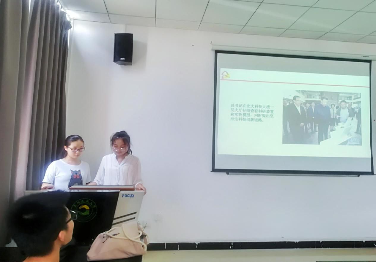活动中,张月、张杨对习近平总书记在北大的讲话内容进行详细的讲解,把习近平总书记的新时代中国特色社会主义思想和基本方略一一的为同学们介绍。着重讲述:坚持党对一切工作的领导,铭记青年人的历史任务,教育为先,对当代青年提出爱国、励志、求真、力行等明确要求,要追梦圆梦,坚持马克思主义,培养科技人才等。