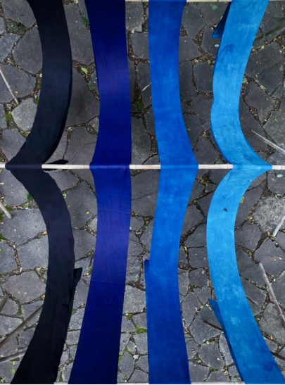 《贵州水族色卡》项目依托贵州民族大学美术学院副教授、硕士生导师潘淘洁的研究成果,系统梳理了贵州水族四种代表性色彩:以马蓝制靛为染料、两次浸染而得的清新自然的浅蓝色(汉语谐音:色敢秀帕);逐层加深、再浸泡牛皮熬胶、蒸煮捶打而得的青色(汉语谐音:色敢秀);再浸染化香树叶汁并经泥染工艺制成的深沉黑色(汉语谐音:色弄);以及取自赭石矿物、用于水书批注的红色(汉语谐音:色罕)。