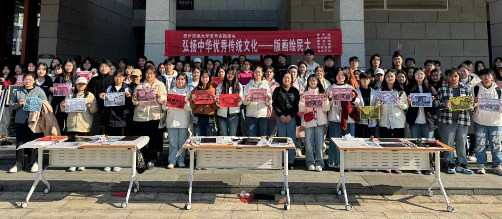 为深入贯彻落实习近平总书记关于美育工作的重要论述和全国教育大会精神,坚持以美育人、以美化人,积极弘扬中华美育精神,引导学生自觉传承和弘扬中华优秀传统文化,全面提高学生的审美和人文素养,增强文化自信。近日,贵州民族大学美术学院开展“弘扬中华优秀传统文化一一版画绘民大”美育实践活动。